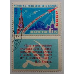 SpaceСССР 1961 Человек страны советов в космосе, гашеная с купоном
