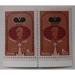 SportСССР 1982 Чемпионат мира по шахматам, надпечатка Карпов, сцепка, MNH