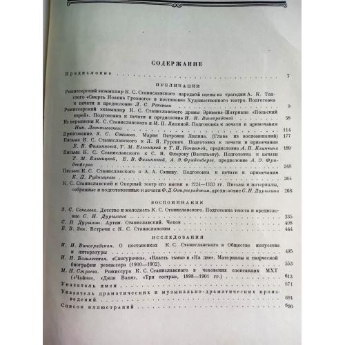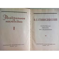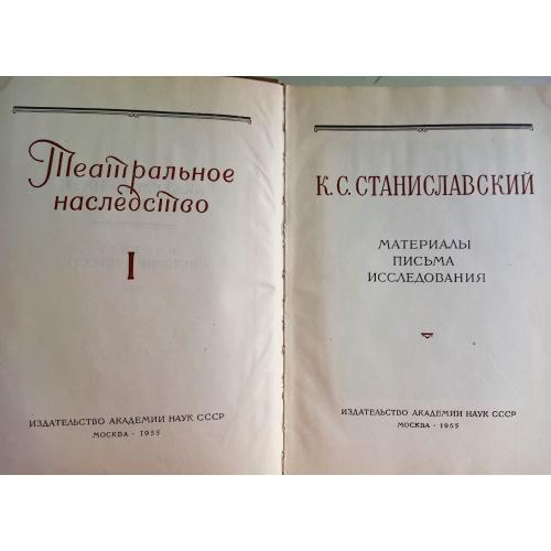 Книга "К.С.Станиславский", Театральное наследство: материалы, письма, исследования, 1955 г, издательство Академии наук СССР, твердая обложка, большой формат, 699 страниц с цветными и черно-белыми иллбстрациями того времени: фото, афиши, рукописи и схемы рукой автора, удовлетворительное состояние. Институт истории искусств Академии наук СССР опубликовал ряд ценных документов и значительных фактических сведений, существенно пополняющих познания о жизни и творчечестве мастера,- режисерские партитуры, письма, воспоминания сподвижников и очевидцев его репетиций.