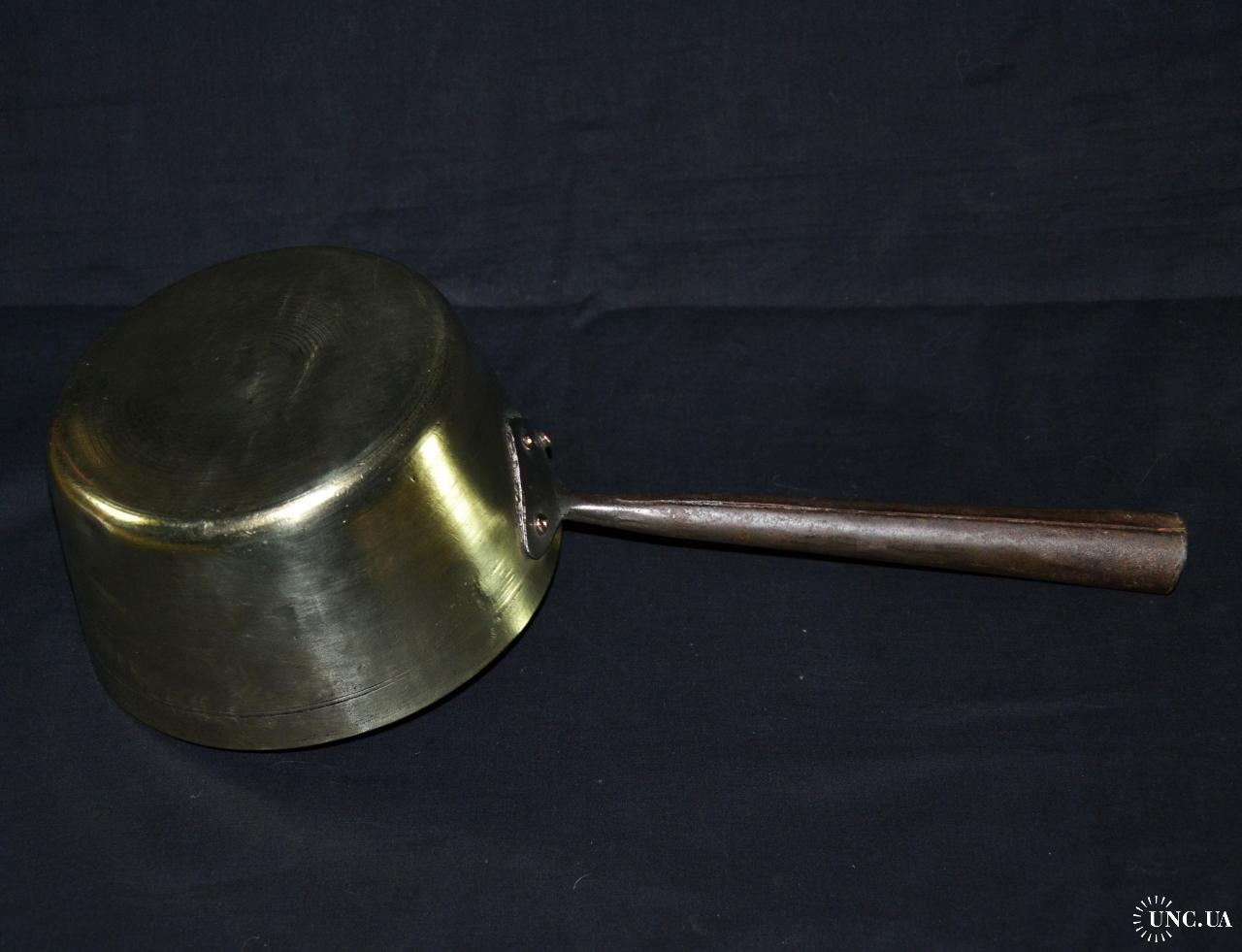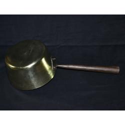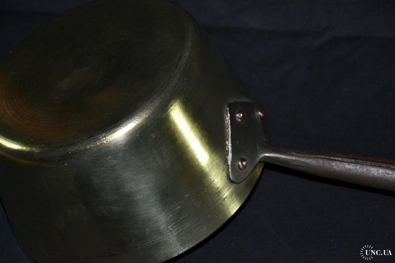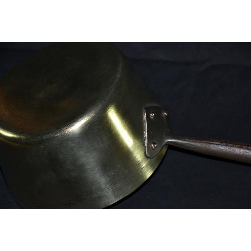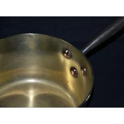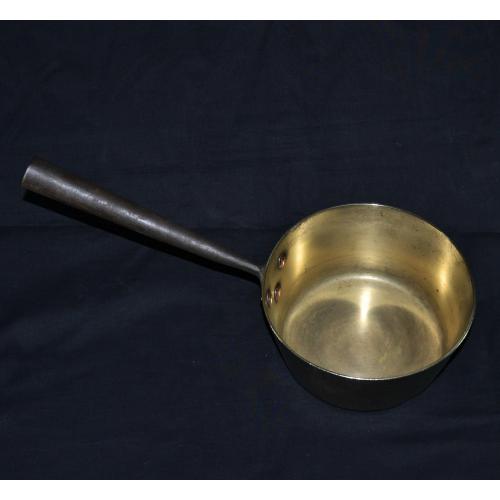 1901-1920Старинная латунная кастрюля или сотейник в деревенском стиле, с железной ручкой.
