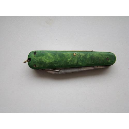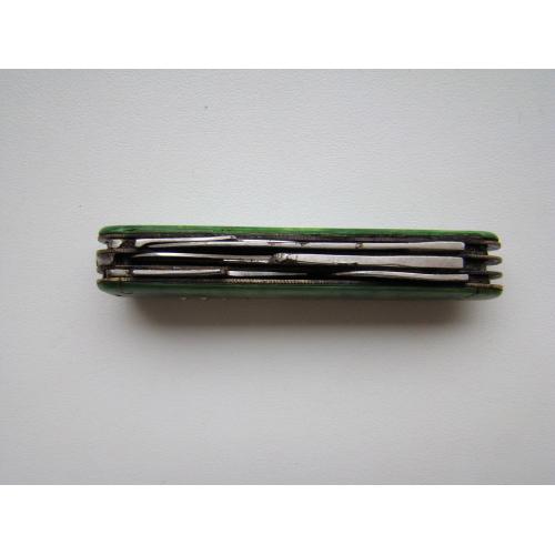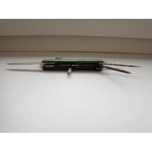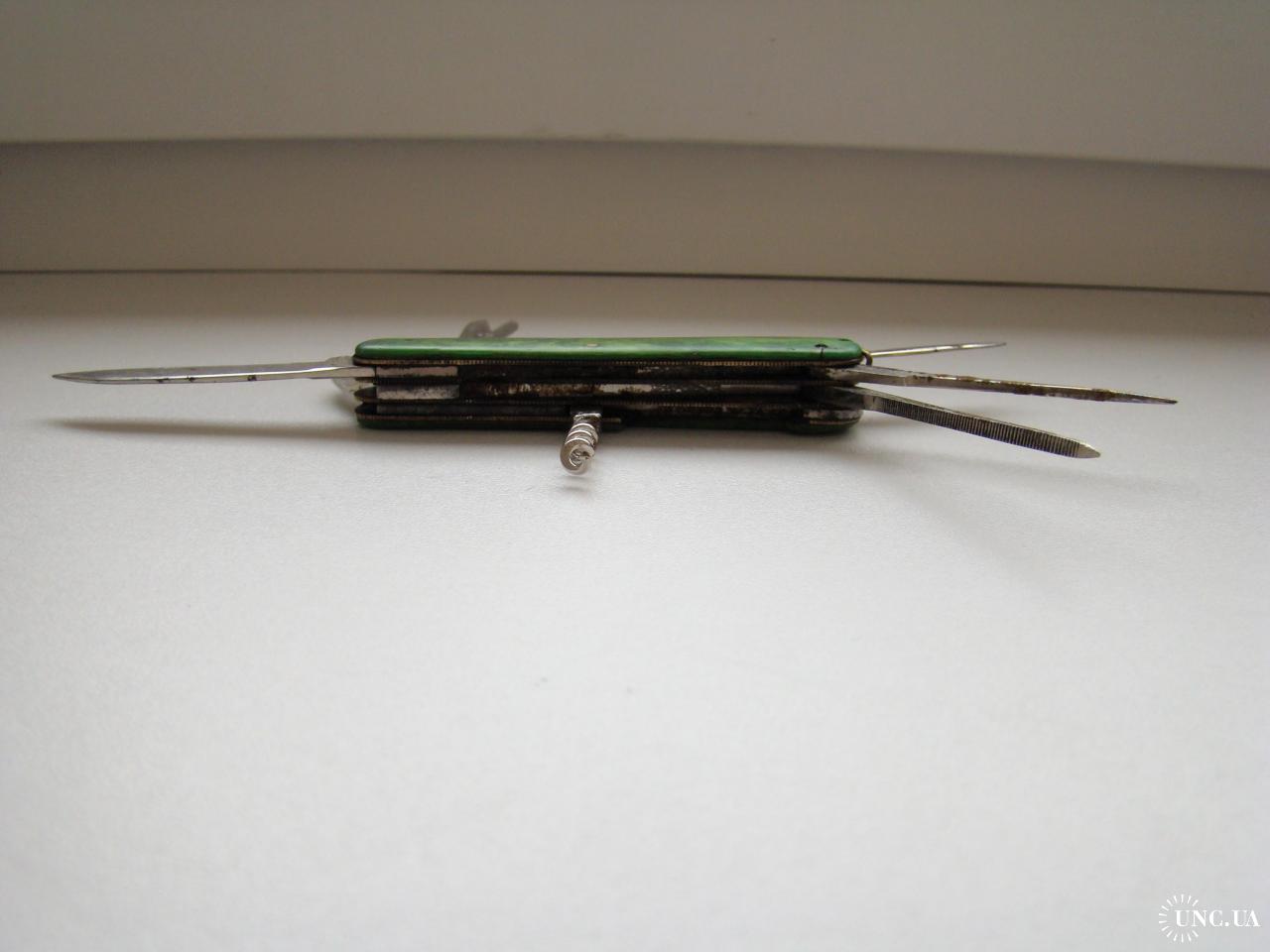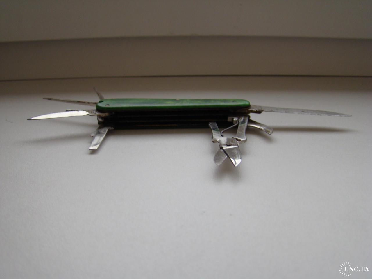 Нож, как по мне, в хорошем состоянии как для его лет. Пружины в норме, все 8 предметов не люфтят. Клеймо СН имеется на раме ножа, что означает, что данный нож был изготовлен в период с 1954 по 1975 гг. на Ворсменском заводе складных ножей г.Ворсма. В остальном все как на фото. В коллекцию.