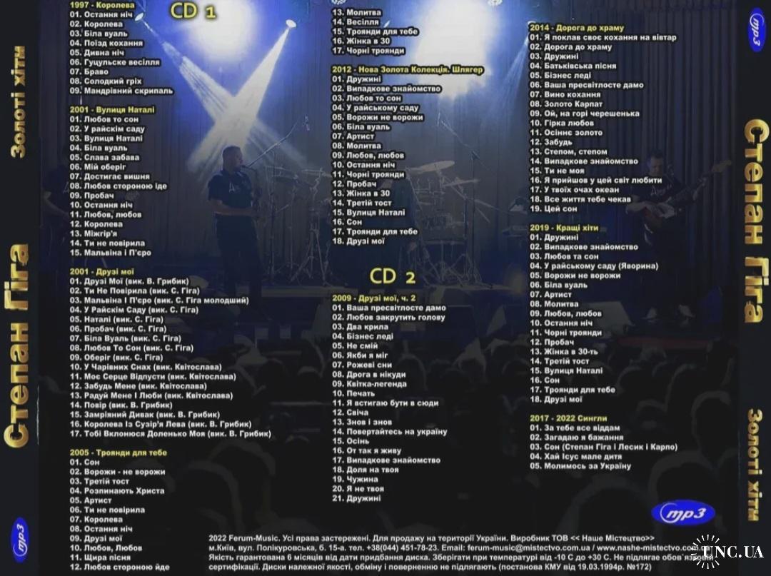 Музичні Диски. Колекція всіх студійних альбомів в дискографії, Українського, Народного та Заслуженого артиста України, володара титулів Ордена Князя Костянтина Острозького 1-го ступеня, Ордена Козацька Слава 3-го ступеня, Орденів Андрія Первозванного 1-го та 2-го ступенів, Ордена Різдва Христового, відзнакою Золотий Диск в Мюнхені, покійного вже Степана Петровича Гіги. На дисках поміщені альбоми: Вулиця Наталі, Друзі Мої, Троянди Для Тебе, Нова Золота Колекція Шлягер, Друзі Мої. Частина 2, Дорога До Храму, Кращі Хіти, Сингли. Випуск фірми (MuzDecor) Ukraine, 2025-ий рік. Видання з двох дисків (2CD) формату МР3. Нове, запаковане. Категорія S/S. Відправка по Україні службами доставки: Нова Пошта, Укр Пошта, Делівері. Також відправляємо посилки за кордон по цілому світу.