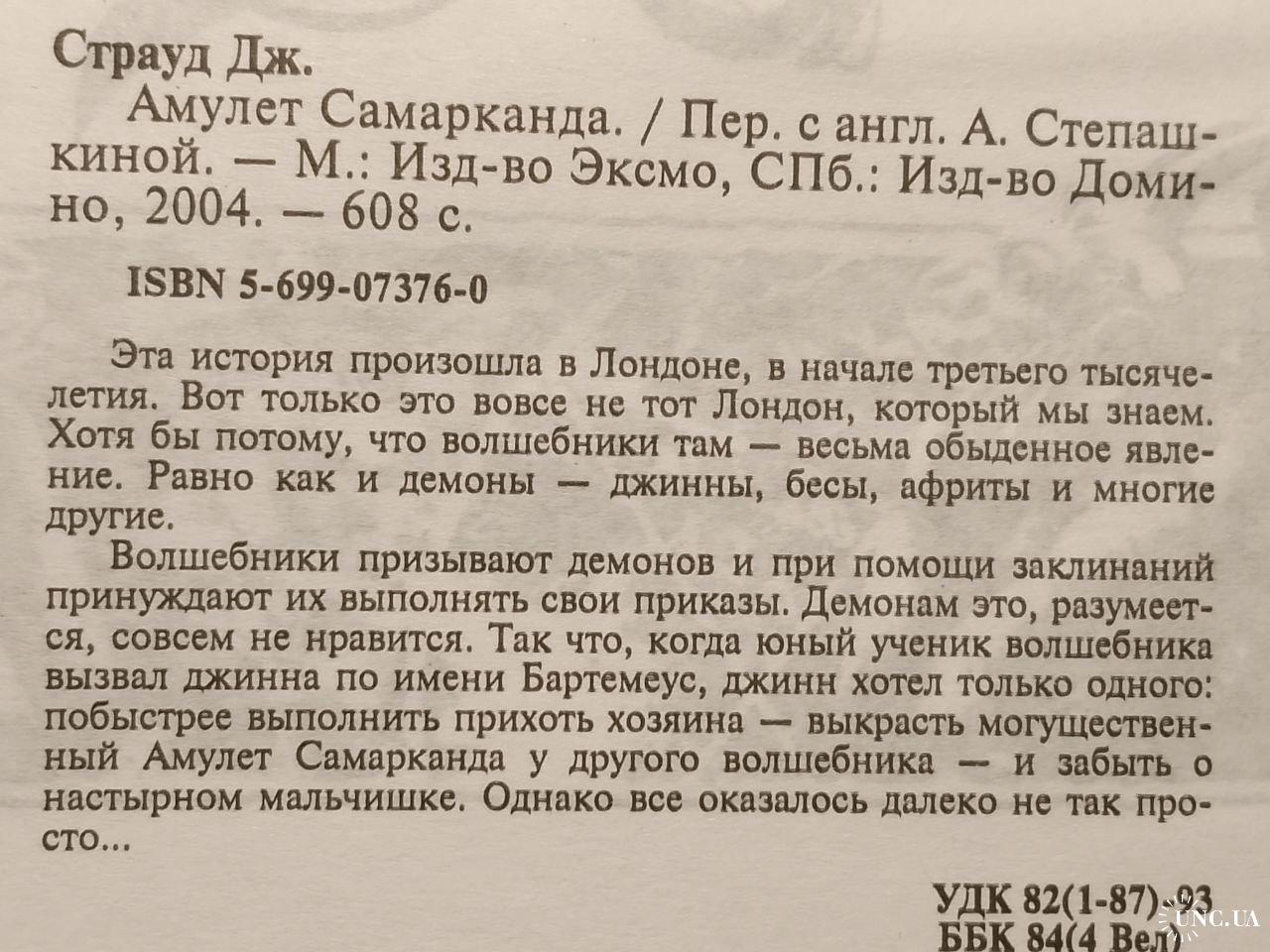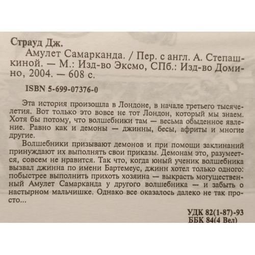 Страуд. Амулет Самарканда. Трилогия Баритимеуса. Книга 1. Издательство: М. Эксмо, СПб. Домино2004 год. Отличное состояние.