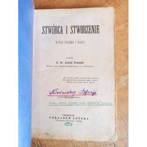 Napisal X. Dr. Antoni Trznadel (profesor dyec. Zakladu teologicznego o. l. w Przemyslu