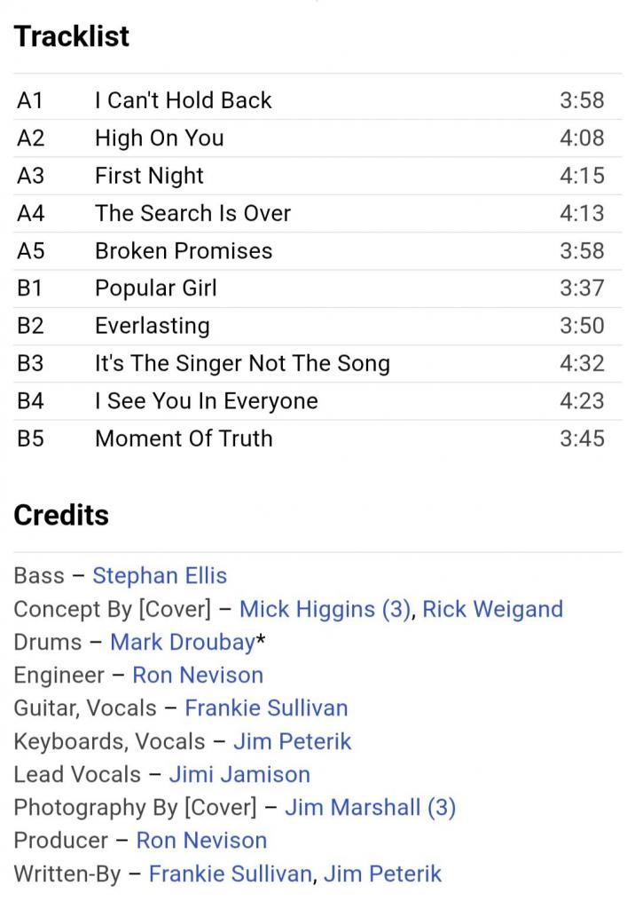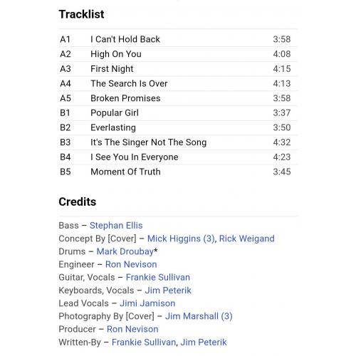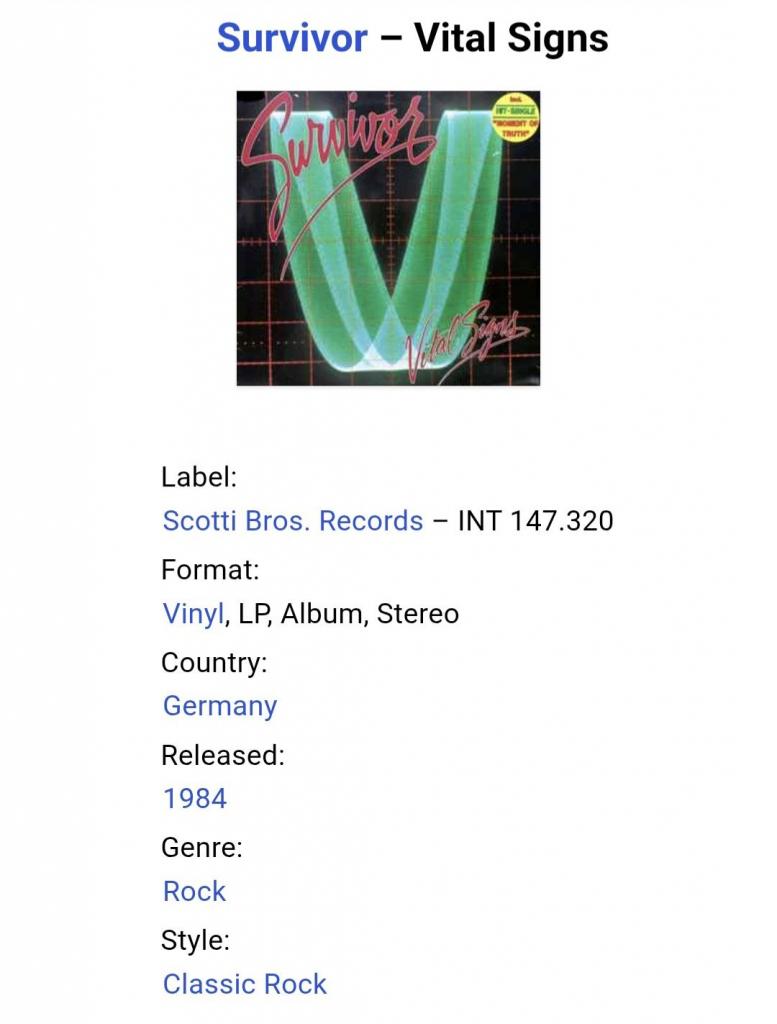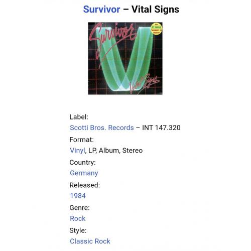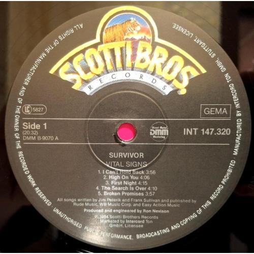 Вінілова платівка. П'ятий, в дискографії, студійний альбом, Американської групи із Чикаго, стилю класик рок, прог рок, хард рок, Survivor, до складу якої, на той час, входили Джим Петерік, Стефан Елліс, Френкі Салліван, Джимі Джемісон та Марк Драбі (Vital Signs) 1984. Випуск фірми (Scotti Bros. Records) Germany, 1984-ий рік. Оригінальне, першопресове, Німецьке видання. Стан платівки NM-. Конверт глянцевий. Стан конверту ЕХ+. Відправка по Україні службами доставки: Нова Пошта, Укр Пошта, Делівері. Також відправляємо посилки за кордон по цілому світу.