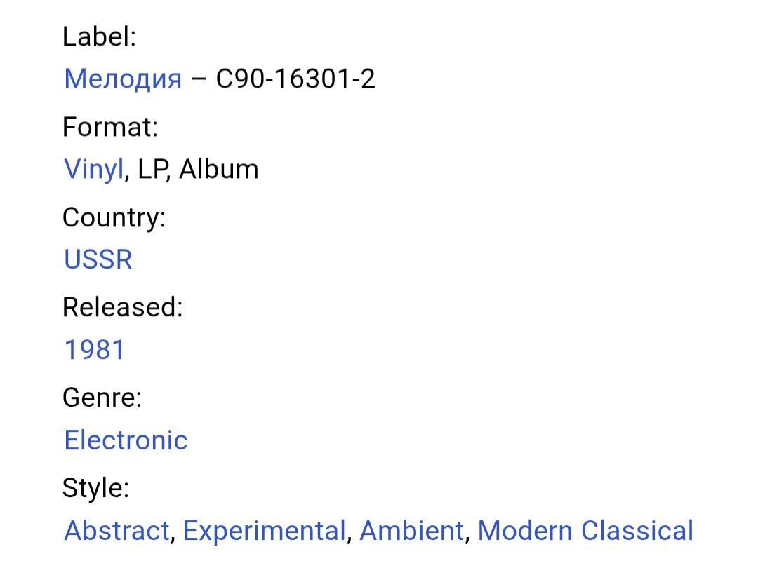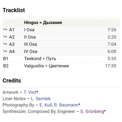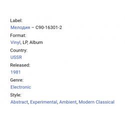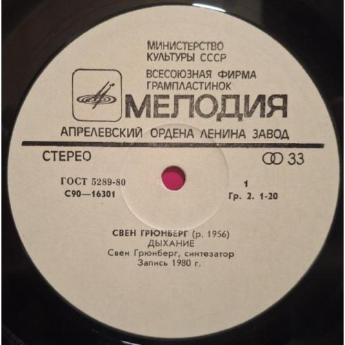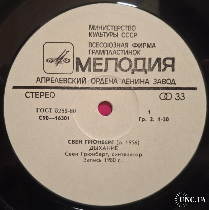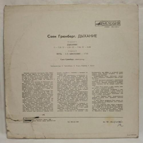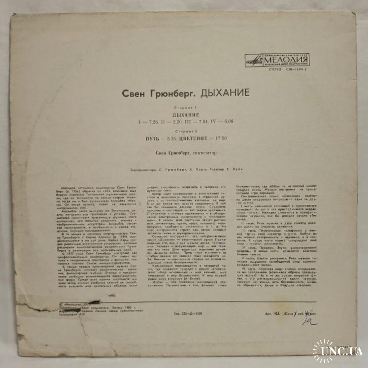 Вінілова платівка. Другий, в дискографії, студійний альбом Естонського композитора Шведського походження, виконавця стилю абстракт, експерементальна електронна музика, Свена Грюнберга (Подих) 1980. Випуск фірми (Мелодія) СРСР, Апрелєвський завод грамплатівок 1981-ий рік. Оригінальне першопресове видання. Рідкісне (Rare). Стан платівки EX-. Стан конверту VG+. Відправка по Україні службами доставки: Нова Пошта, Укр Пошта, Делівері. Також відправляємо посилки за кордон по цілому світу.