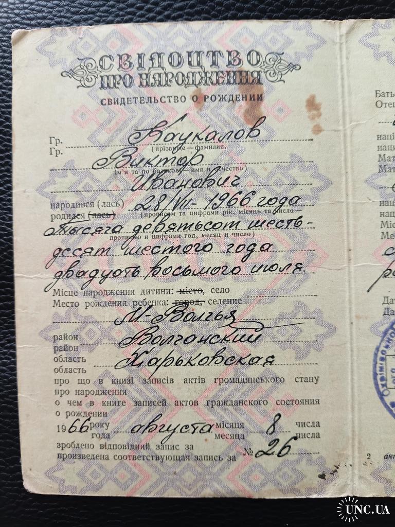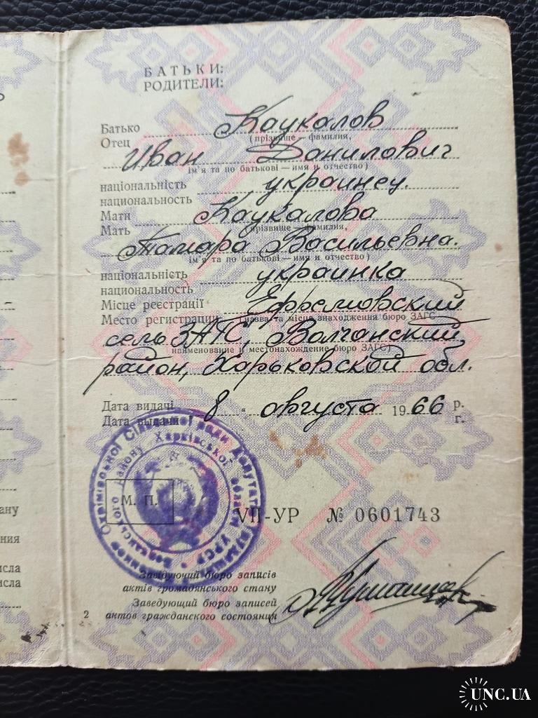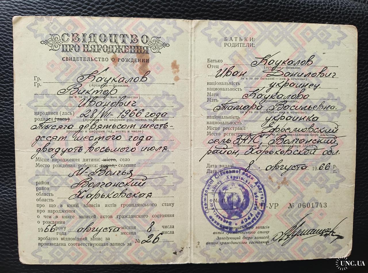 1961-1980Свідоцтво про народження 1966 Свидетельство о рождении