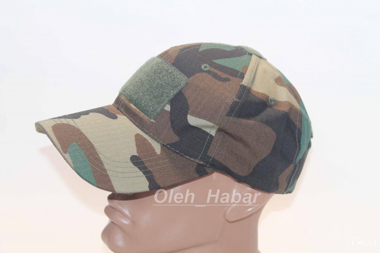 Тактична бейсболка Woodland з липучкою під шеврон