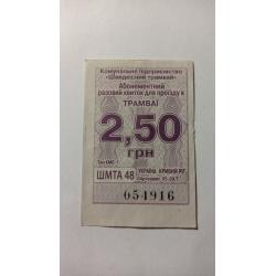 unknownТалон на проїзд. Україна. Кривий Ріг. 2,50 грн.