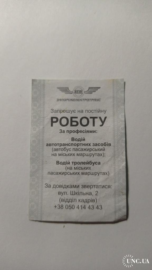 unknownТалон на проїзд. Україна. Запоріжжя. 15 грн.