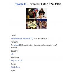 Вінілові платівки. Офіційна збірка найкращих хітів Голландської диско, поп, рок групи, переможців Євробачення 1975-го року, Teach-In, до складу якої за весь період часу входили Кус Верстіг, Хільда Фелікс, Кріс Де Волде, Руді Нейгейс, Генк Вестендорп, Франс Шадделі, Нік Де Вос, Вім Де Вос, Гетті Касперс, Джон Гаасбек, Бетті Вермелен, Маріанне Вольсінк, Ард Веінг та Ганс Нейланд (Greatest Hits) 1974-89. Випуск фірми (Renaissance Records) Europe, 2024-ий рік. Видання з двох платівок (2LP). Кольорові вініли (Coloured Vinyl). Лімітований тираж (Limited Edition). Видання нове, запаковане. Категорія S/S. Відправка по Україні службами доставки: Нова Пошта, Укр Пошта, Делівері. Також відправляємо посилки за кордон по цілому світу.
