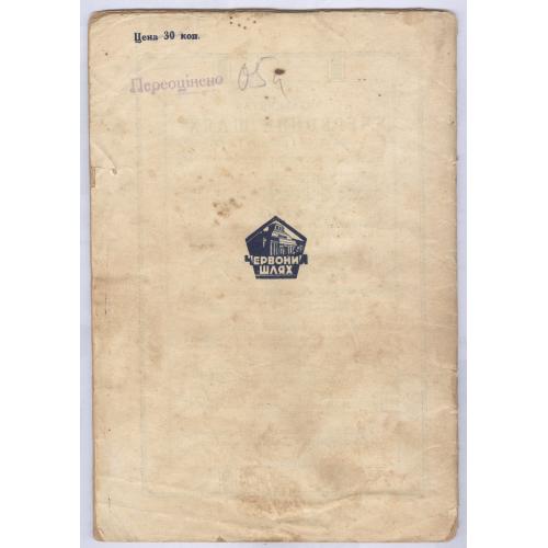 Обкладинка: художник Сергій Боровий Харків. З 1919 року український художник та книжковий графік Сергій Боровий працював в українських видавництвах над оздобленням української книги. Володіючи графічною формою та знаючи принципи композиції, митець працював над створенням обкладинок до книжок «Осінь» М. Хвильового, «Сонька в Молдаванки» Авербаха, «Любов й дим» Дніпровського тощо.