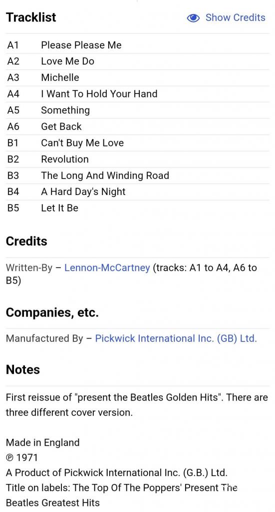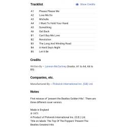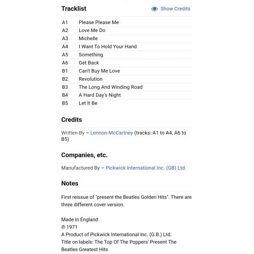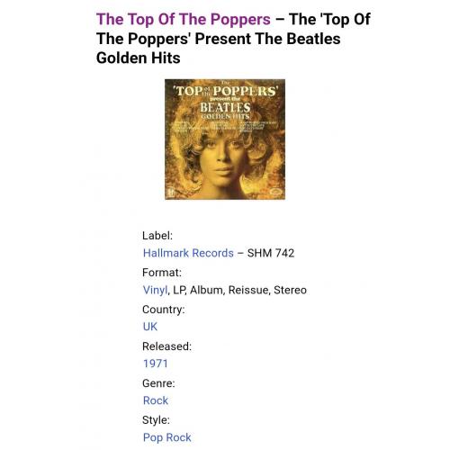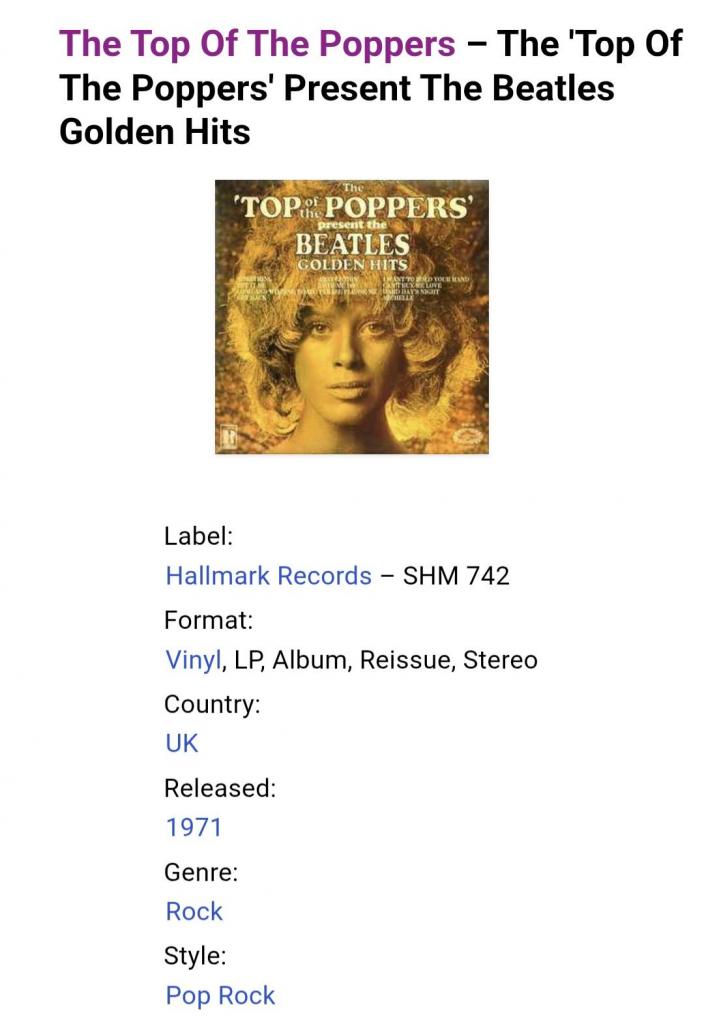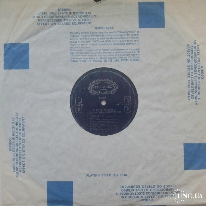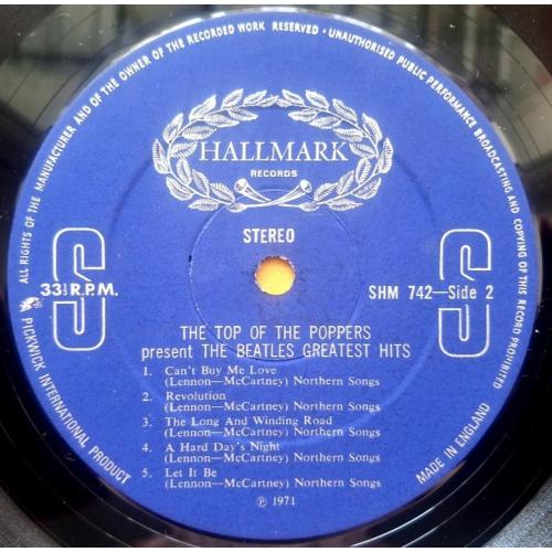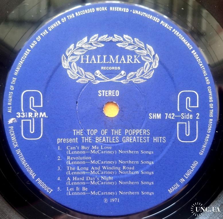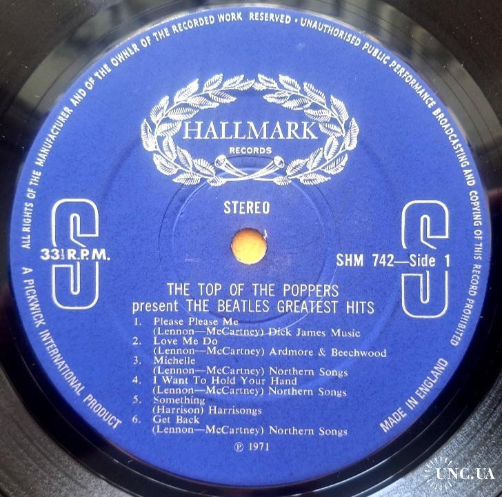 Вінілова платівка. Збірки найкращих хітів, легендарної Британської біг-біт, психоделік рок-групи із Ліверпуля, The Beatles, яка складалась з учасників Джона Леннона, Пола Маккартні, Джорджа Харрісона та Рінго Старра (The Top Of The Poppers' Present The Beatles Greatest Hits) 1963-70. Випуск фірми (Hallmark Records) England, 1971-ий рік. Оригінальне, Англійське видання. Стан платівки EX+. Конверт ламінований. Стан конверту EX+. Відправка по Україні службами доставки: Нова Пошта, Укр Пошта, Делівері. Також відправляємо посилки за кордон по цілому світу.