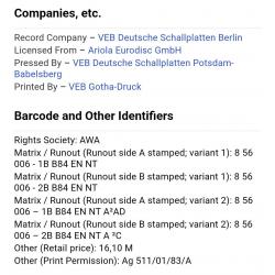 Система оцінки стану платівок проводяться по градації Record Collector, по 5-ти бальній системі: S/S (Новий, запакований вініл), M (5+) - новий, але розпакований вініл, NM (5), NM- (5-), EX+ (4+), EX (4), EX- (4-), VG+ (3+), VG (3), VG- (3-), G+ (2+). G (2].
