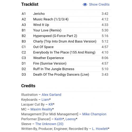 Вінілові платівки. Перший, дебютний, в дискографії, студійний альбом, Британської електро панк, хардкор, рейв групи The Prodigy, до складу якої, на той час, входили учасники Ліам Гаулетт, Максим Реаліті, Кіт Флінт та Лірой Торнхілл (Experience) 1992. Випуск фірми (XL Recordings) England, 2020-ий рік. Видання з двох платівок (2LP). Нове, запаковане. Категорія S/S. Відправка по Україні службами доставки: Нова Пошта, Укр Пошта, Делівері. Також відправляємо посилки за кордон по цілому світу.
