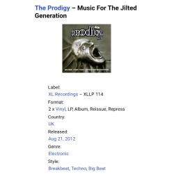 Вінілова платівка. Другий, в дискографії, студійний альбом, Британської електро панк, хардкор, рейв групи The Prodigy, до складу якої, на той час, входили учасники Ліам Гаулетт, Максим Реаліті, Кіт Флінт та Лірой Торнхілл (Music For The Jilted Generation) 1994. Випуск фірми (XL Recordings) England, 2012-ий рік. Видання з двох платівок (2LP). Нове, запаковане. Категорія S/S. Відправка по Україні службами доставки: Нова Пошта, Укр Пошта, Делівері. Також відправляємо посилки за кордон по цілому світу.