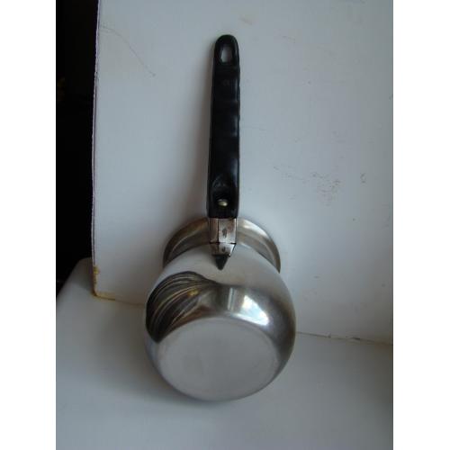 1981-2000Объем 350 мл. Изготовлена из нержавеющей стали, ручка карболитовая. В хорошем состоянии. В остальном все как на фото.
