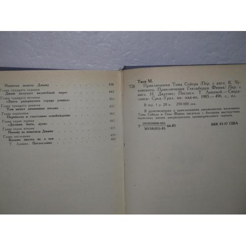 Марк Твен. Приключения Тома Сойера. Приключения Гекльберри Финна. Средне-Уральское книжное издательство. Свердловск. 1985 год. Состояние книги близкое к отличному. Несколько потускнело тиснение на обложке. На чистом форзаце дарственная надпись.