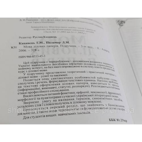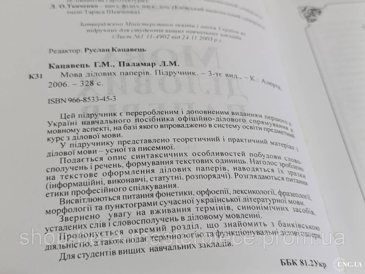 Учебник Язык деловых бумаг Кацавец Г.М., Паламарь Л.М. 2006 Мягкая обложка 328 стр Состояние идеал. Обложка целая. Страницы целые Третье издание Является переработанным и дополненным изданием учебного пособия официально-делового направления в языковом аспекте, на базе которого внедрен в систему образования предметный курс по деловому языку. В учебнике представлен теоретический и практический материал по деловому языку – устному и письменному. Представлено описание синтаксических особенностей построения словосочетаний и предложений, формирование текстовых единиц. Ударение сделано на текстовое оформление деловых бумаг, приводятся их образцы (информационные, исполнительные, уставные, распорядительные). Рассматриваются вопросы этики профессионального общения. Освещаются вопросы фонетики, орфоэпии, лексикологии, фразеологии, морфологии и пунктограммы современного украинского литературного языка. Обращено внимание на употребление терминов, синонимических средств, устоявшихся слов и словосочетаний в деловом языке. Предлагается отдельный раздел, который знакомит с банковской деятельностью, а также представляет терминологию и образцы деловых бумаг. Для студентов высших учебных заведений, предприятий и другихSeller's answers to your questions