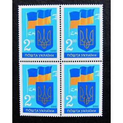 Украина, 1992 г., квартблок, Флаг и Герб Украины. Первая годовщина независимости Украины. , MNH