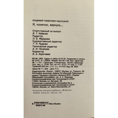 В.Высоцкий «Я, конечно, вернусь…»