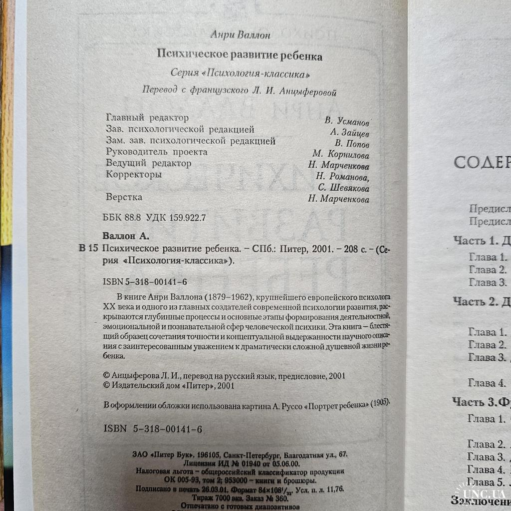 Валлон А. Психическое развитие ребенка. СПб. Питер 2001г. 208с. твердый переплет, обычный формат.