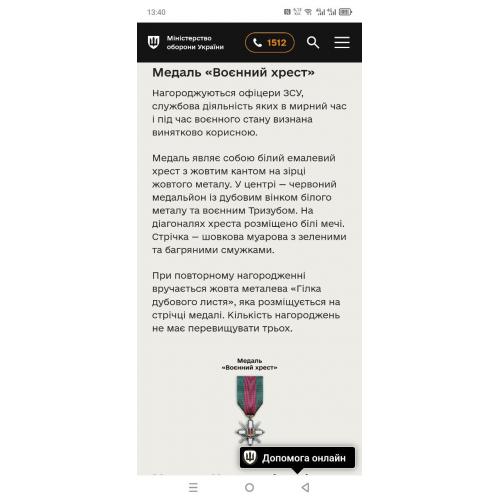 2021-....Відзнака міністерства оборони України, ВОЄННИЙ ХРЕСТ! ВІДМІННИЙ СТАН
