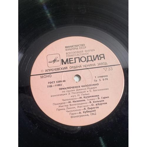 Виниловая пластинка аудиосказка "Приключения Чиполлино" Мелодия СССР 1962 г. 33Д-11003