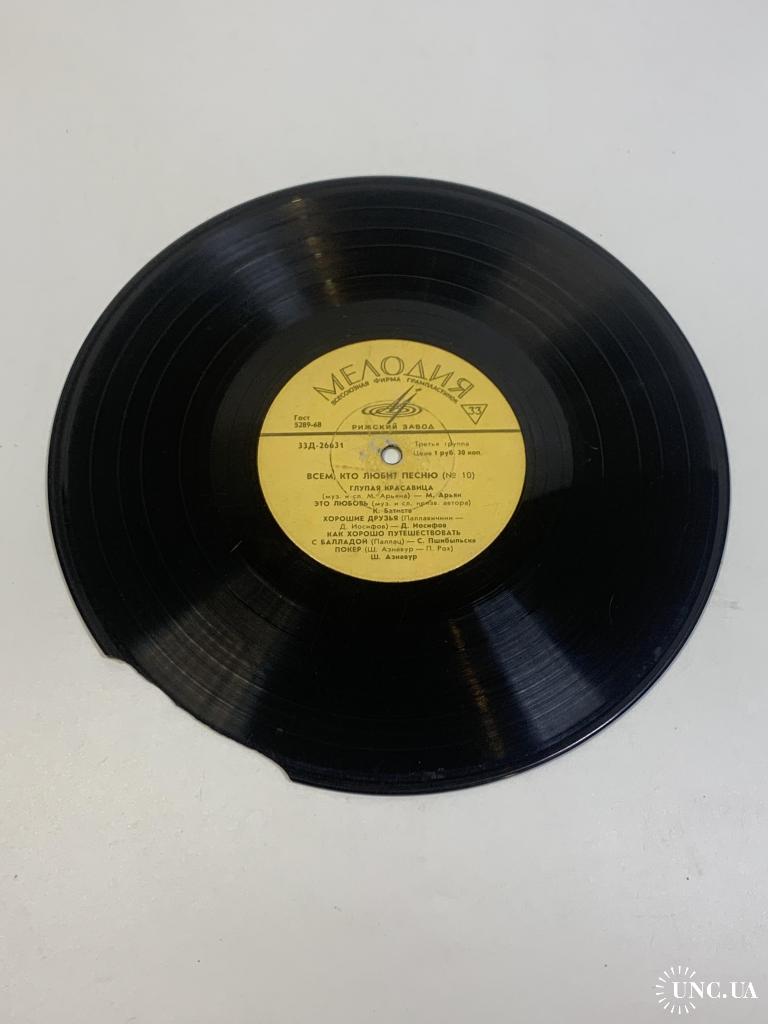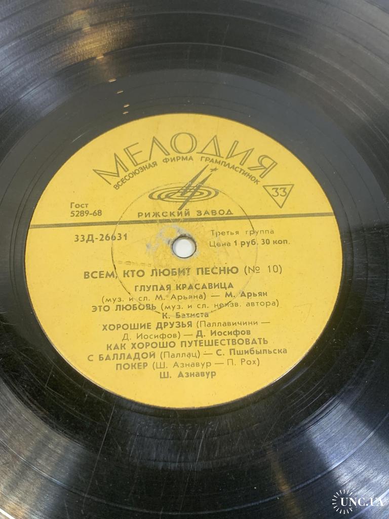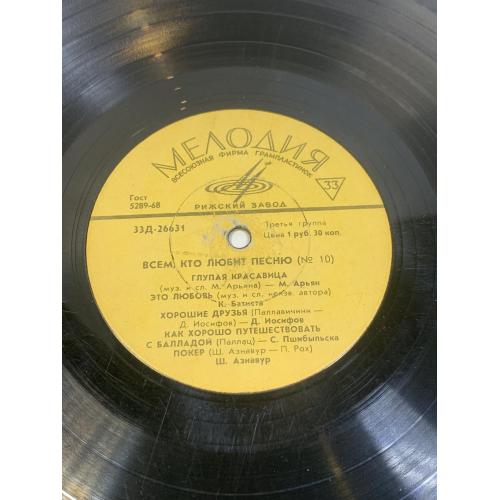 Виниловая пластинка эстрада «Всем, кто любит песню (№ 10)» Мелодия Рижский 33Д-26632 33 об/мин (Н2743)