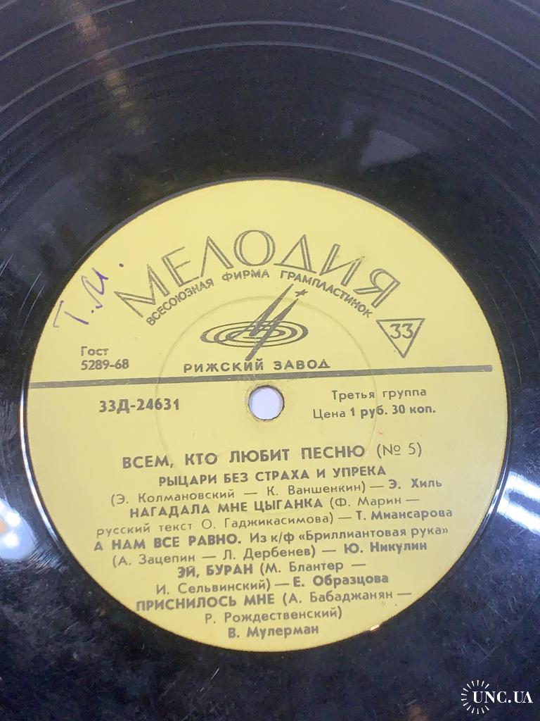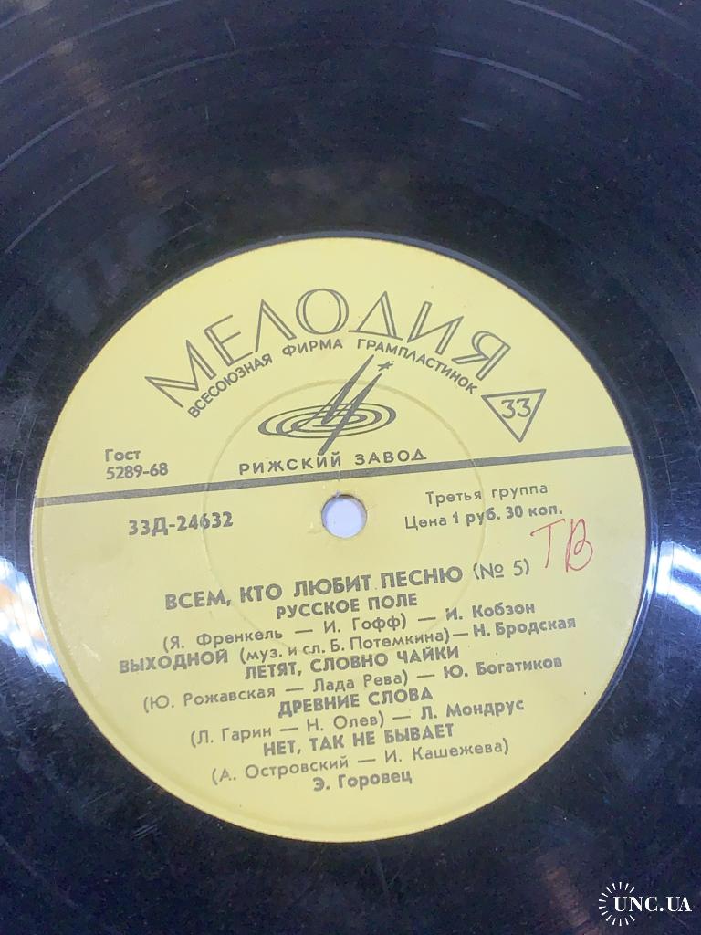 Виниловая пластинка эстрада «Всем, кто любит песню (№ 5)» Мелодия 33Д-24632 33 об/мин (Н2728)