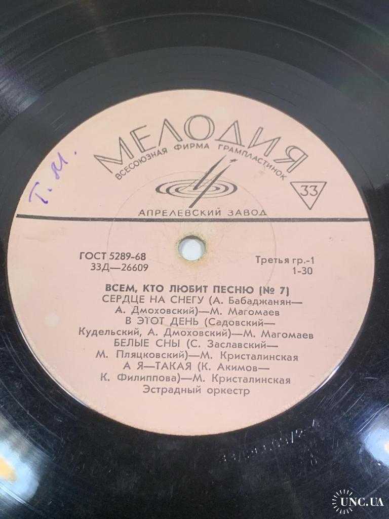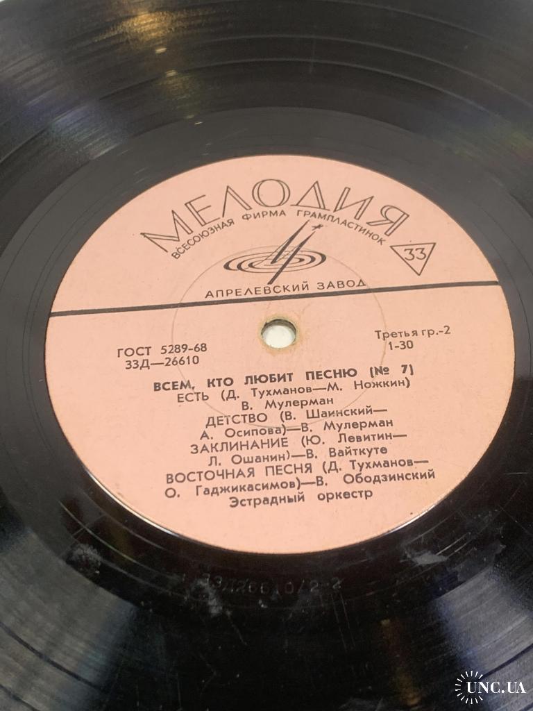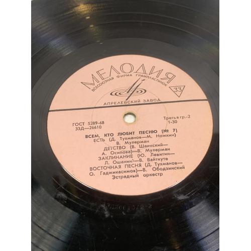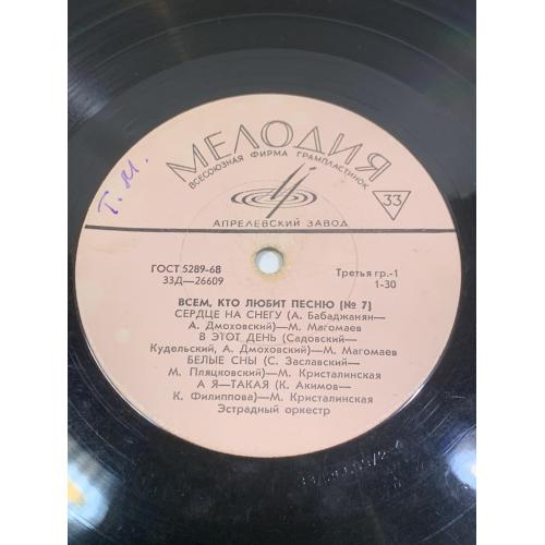 Виниловая пластинка эстрада «Всем, кто любит песню №7» Мелодия 33Д-26610 33 об/мин (Н2719)
