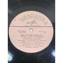 Винтажная советская грампластинка из популярной серии «Всем, кто любит песню», выпущенная фирмой «Мелодия» на заводе. Это характерный сборник эстрадных хитов конца 1960-х – начала 1970-х годов, отражающий музыкальные вкусы эпохи.