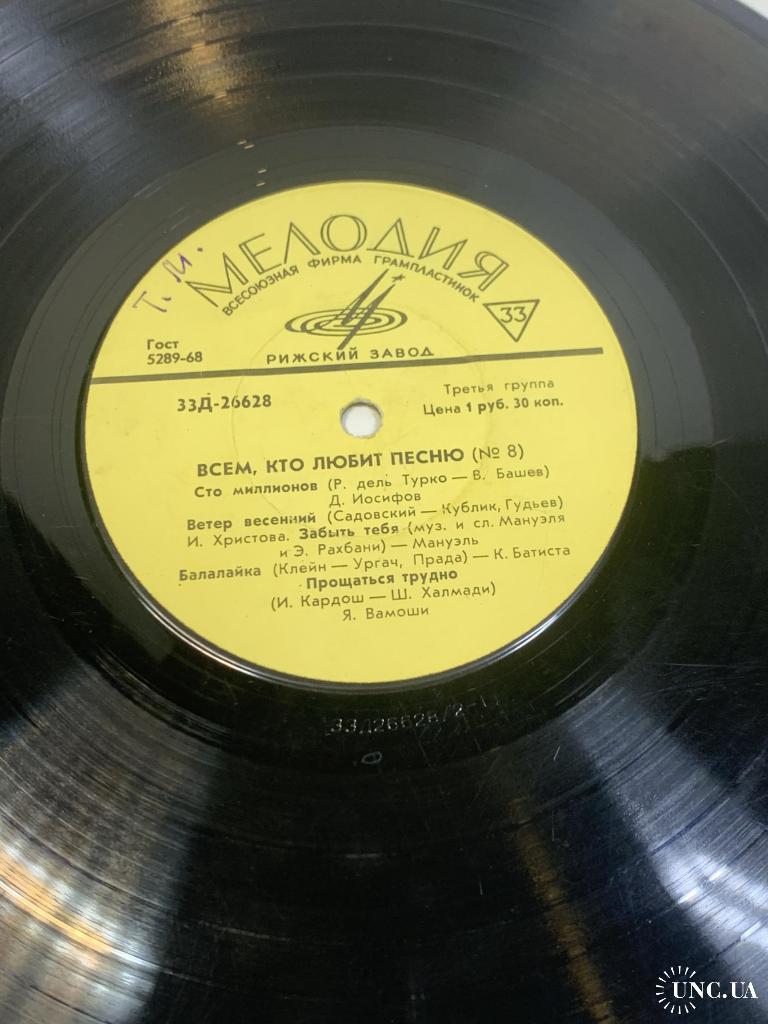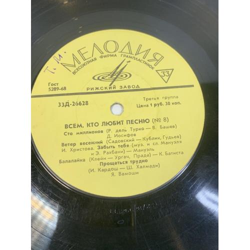 Виниловая пластинка эстрада «Всем, кто любит песню (№ 8)» Мелодия Рижский 33 об/мин (Н2741)