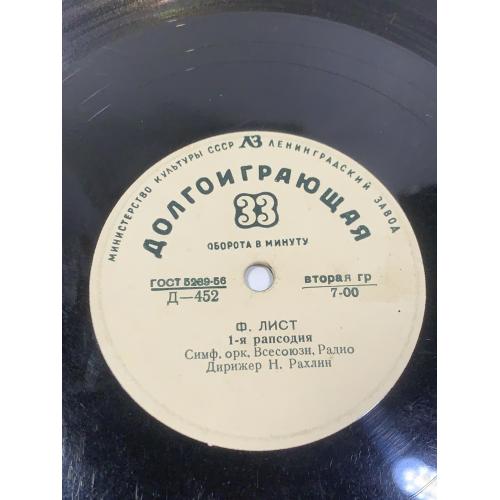 Виниловая пластинка классика «Ференц Лист — Венгерские рапсодии №1 и №2» оркестр Рахлин Д-452 (Н2716)