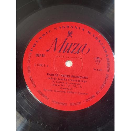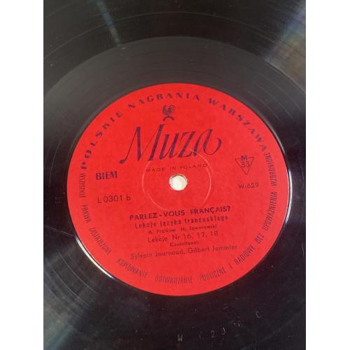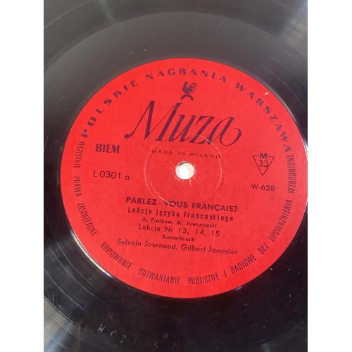 Винтажная учебная грампластинка для изучения французского языка, выпущенная польским лейблом Muza. Пластинка является частью популярного аудиокурса «Parlez-vous français?» и включает последовательные уроки №13–18, что делает её полезной для продолжающего уровня обучения.