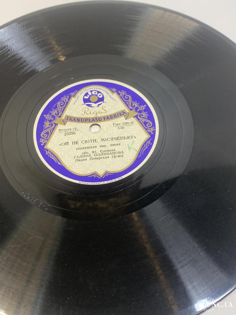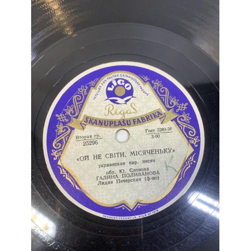 Виниловая пластинка народная «Ой не світи, місяченьку / Весёлый пастушок» Рижская СССР 78 об/мин 25297 (Н2738)
