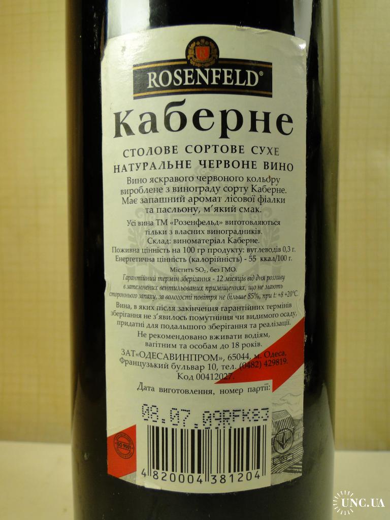 Вино Каберне 2009 год. Запечатанная бутылка.