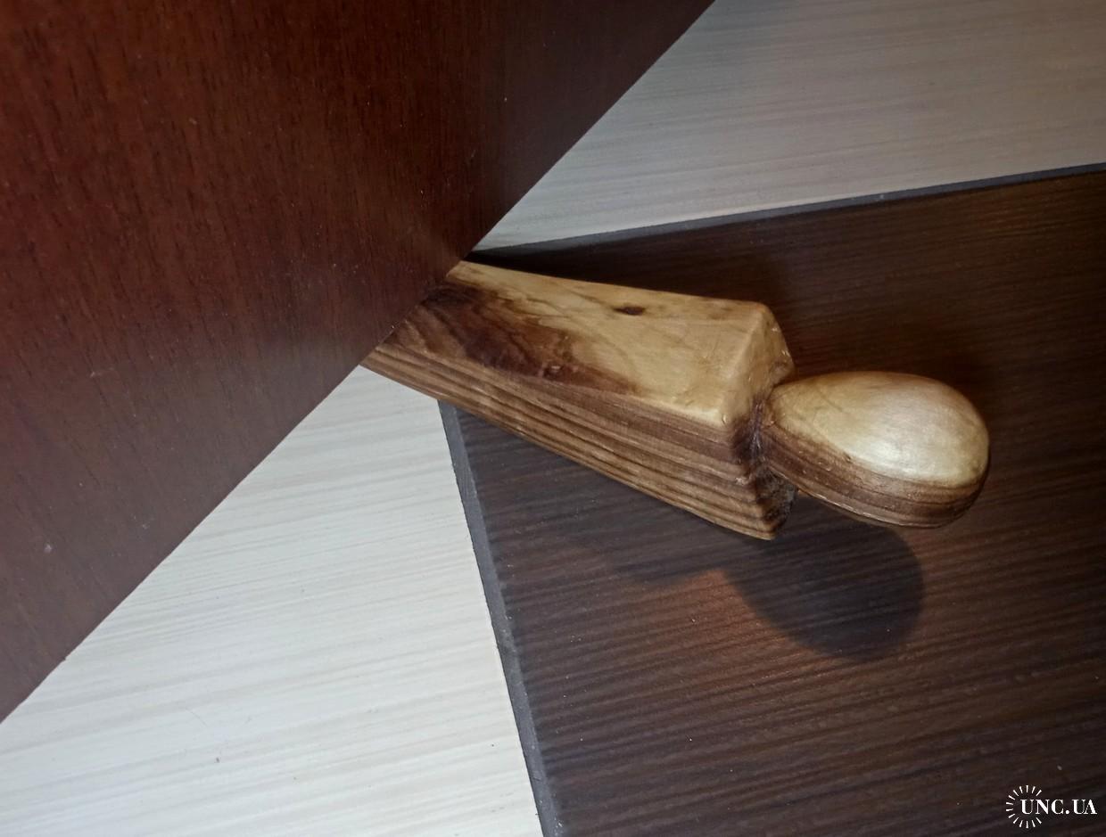 Вінтажний дерев'яний дверний стопер обмежувач (door stop or doorstopper), різьба по дереву
