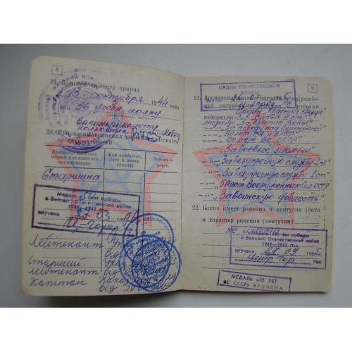 1946-1960Все в хорошем состоянии. В военном билете и учетной карточке есть записи о награждении его боевыми орденами и медалями. В остальном все как на фото.