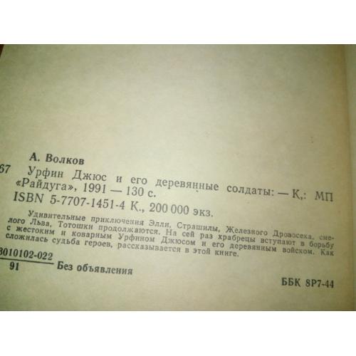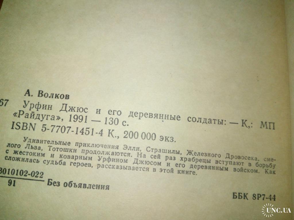 Волков А. Урфин Джюс и его деревянные солдаты. - К.: Райдуга, 1991. - 130 с.