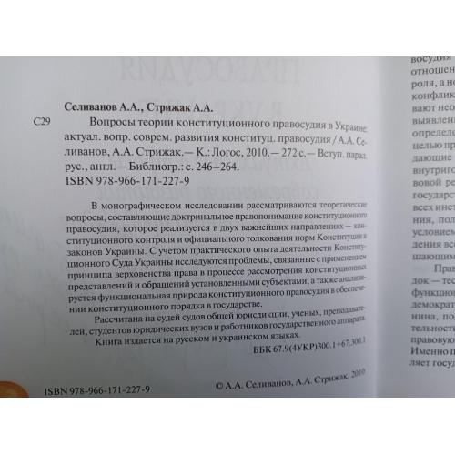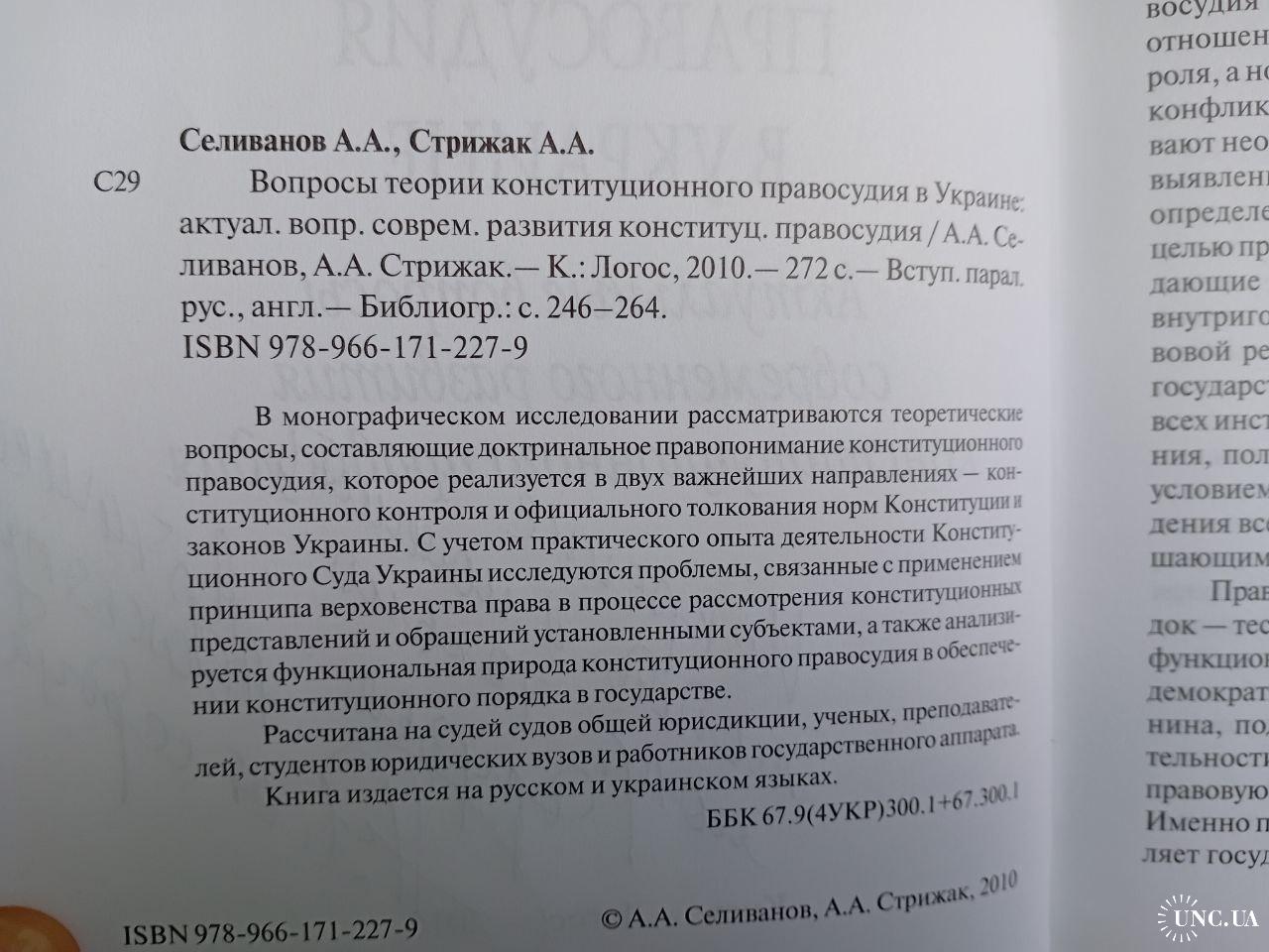 Вопросы теории конституционного правосудия в Украине, 2010 г, 272 стр, хорошее состояние (на фото), твердая обложка, на русск и укр языках. Для судей, юристов, ученых, преподавателей и студентов юрвузов, госслужащих.