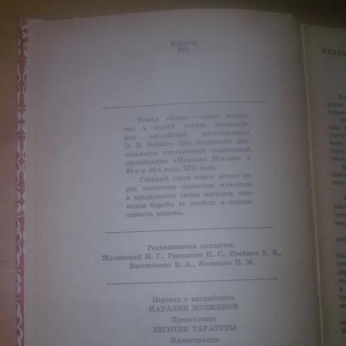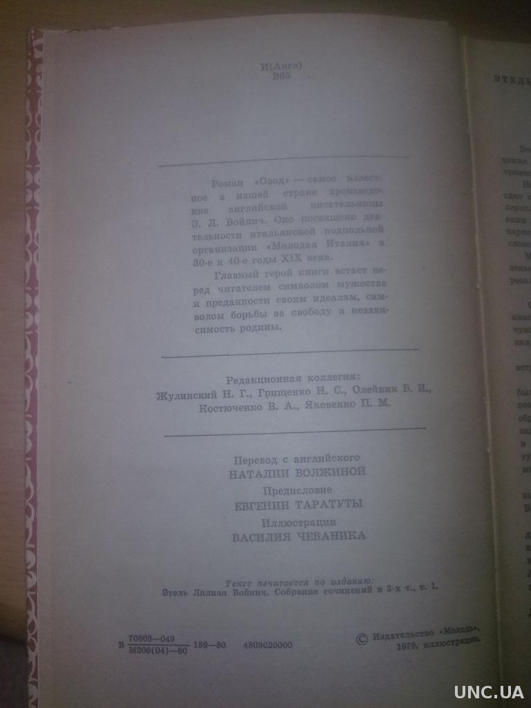 Войнич Этель Лилиан. Овод. Школьная библиотека. «Веселка». 1980