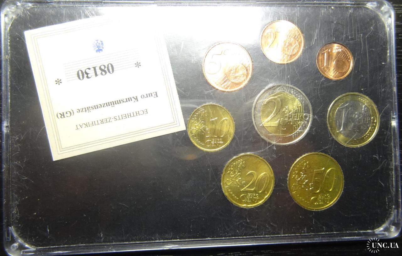 Complete euro-set of Greece 2006 UNC + certificate / Повний комплект євромонет Греції 2006 UNC + сертифікат