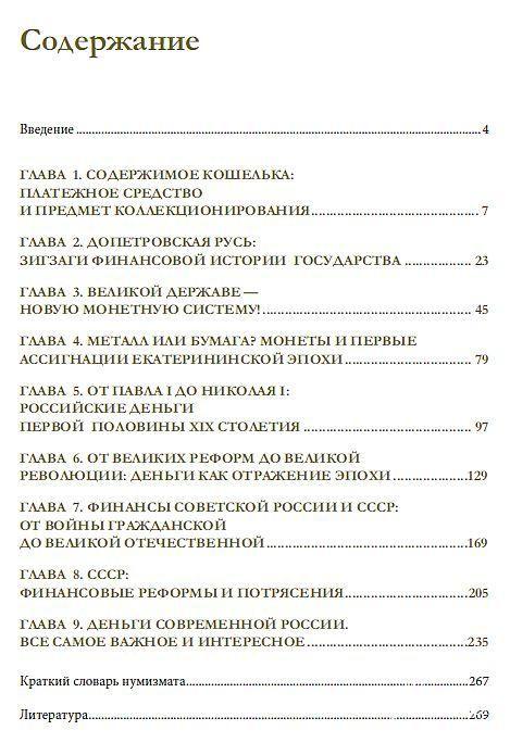 В этой полной иллюстрированной энциклопедии представлена история монет, банкнот и бонов с древних времен и по наши дни. Через призму геополитической, экономической и династической ситуации в России конца XVII — начала XXI века вы познакомитесь с денежной системой нашей страны на протяжении всей ее истории. Книга поможет изучить историю финансовых реформ нашей страны, понимать изображения на монетах и банкнотах, узнать много нового о монетных металлах. Иллюстрированный обзор российской денежной системы будет интересен и начинающим коллекционерам, и всем, кто изучает историю нашей страны.
