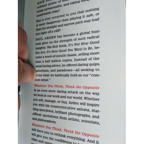 Whatever You Think, Think the Opposite (Пол Арден, 2006) — это яркая и провокационная книга о том, как ломать привычные рамки мышления и находить нестандартные решения. Арден, известный креативный директор в рекламе, показывает, что успех часто рождается не из правильных шагов, а из смелости идти против правил.