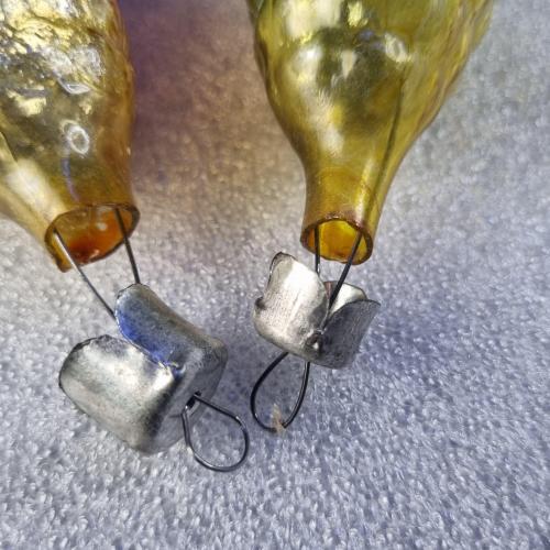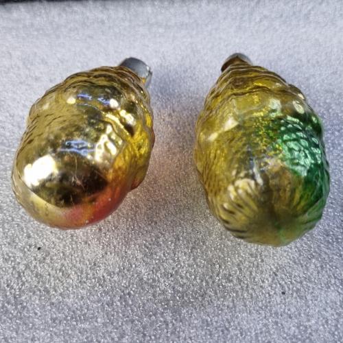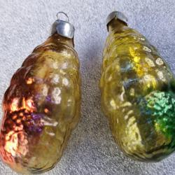 Вінтажний набір із двох старовинних ялинкових прикрас у формі шишок.