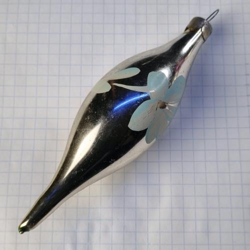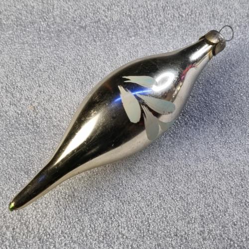 Вінтажна скляна ялинкова прикраса, витягнута форма з загостреними кінцями.