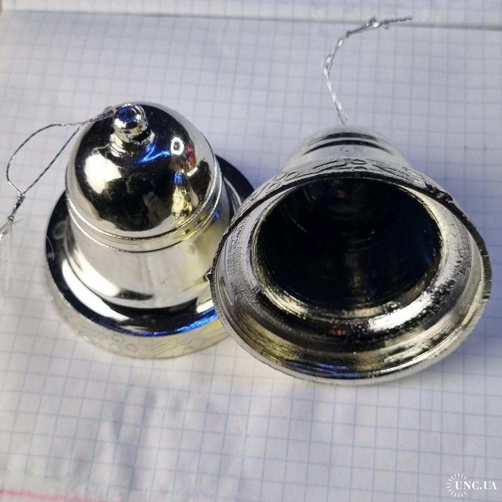 Вінтажні два декоративні дзвіночки сріблястого кольору, виготовлені з легкого пластику.