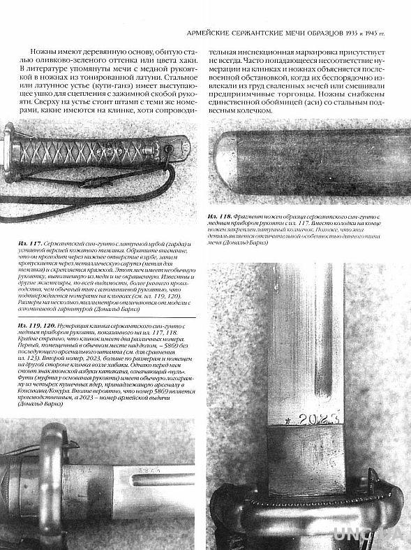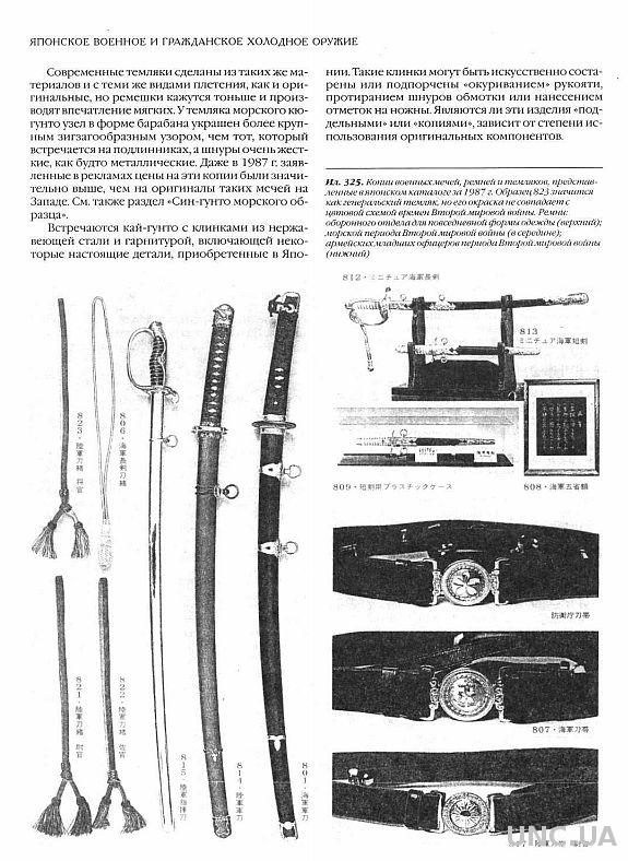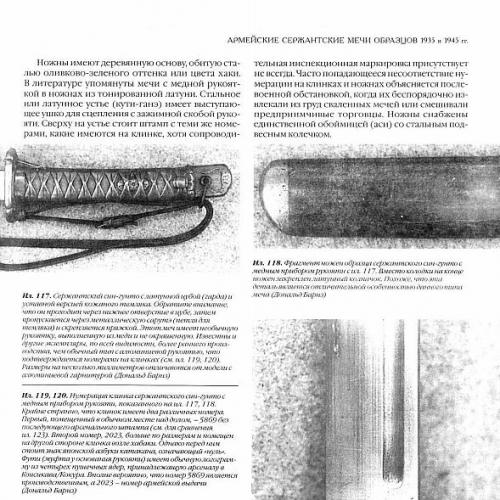 Фундаментальный справочник по истории японских военных и гражданских мечей, кортиков и кинжалов с 1868 по 1945 г. В книге рассказывается об изготовлении холодного оружия в Японии, памятных знаках и ярлыках, о возникновении различных образцов холодного оружия, приводятся документы по передаче этого оружия при капитуляции Японии. Книга богато иллюстрирована редкими фотографиями (более 340 илл.) описываемых образцов японского холодного оружия.