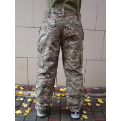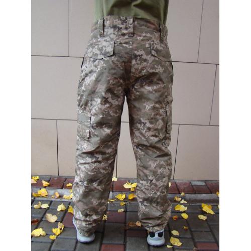 Штаны новые, по назначению не использовались. Ветровлагозащитные с утеплителем, очень теплые. Ширинка на молнии + пуговица, есть широкие хлястики под ремень. Два верхних стандартных кармана, 2 больших боковых накладных кармана на липучках и два задних кармана на липучках. Низ штанов на резиновых утяжках с фиксатором. Размер по бирке 48, но думаю, что хорошо подойдут и на размер 50 и 52 на рост до 175 см (проверено на размер 50 рост 175, в поясе немного великоваты. Но за счет ремня можно регулировать объем пояса). В остальном все как на фото.